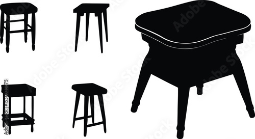 Minimalist black stool vector illustration for furniture design, bar stool silhouette