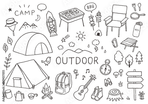 手描き シンプルでかわいいアウトドア用品のイラスト素材