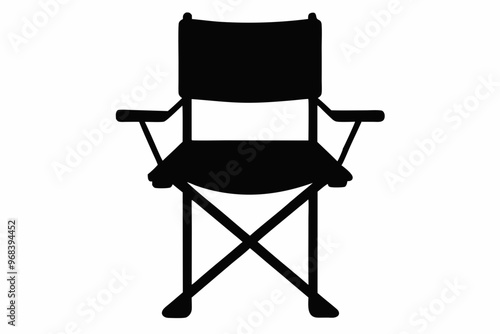 Camping chair bold black silhouette icon isolated on white background. Folding seat.