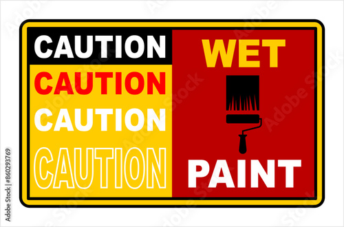 Wet paint warning sign. Yellow road sign with black paint brush icon. Vector illustration. Isolated on white background.