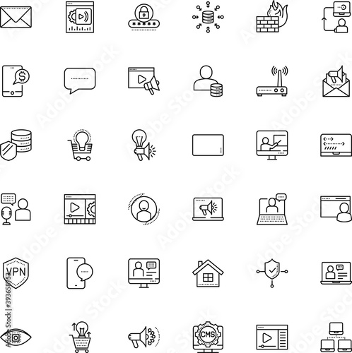 internet vector icon set such as: wheel, login, banking, services, coding, loudspeaker, cinema, production, ui, creativity, businessman, electric, remote, power, shape, webmaster, account, technician