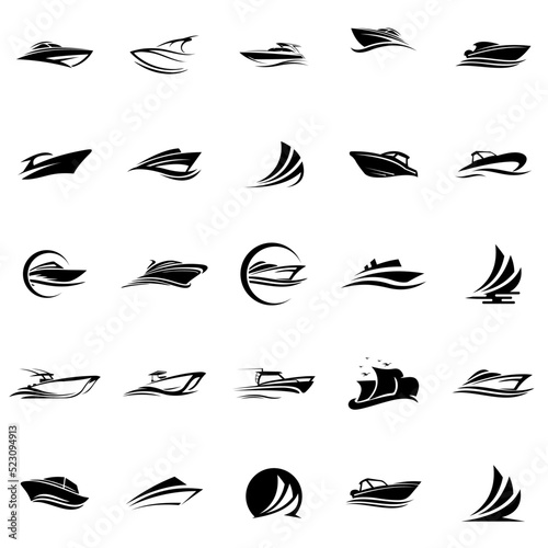 set of boat logo vector design template