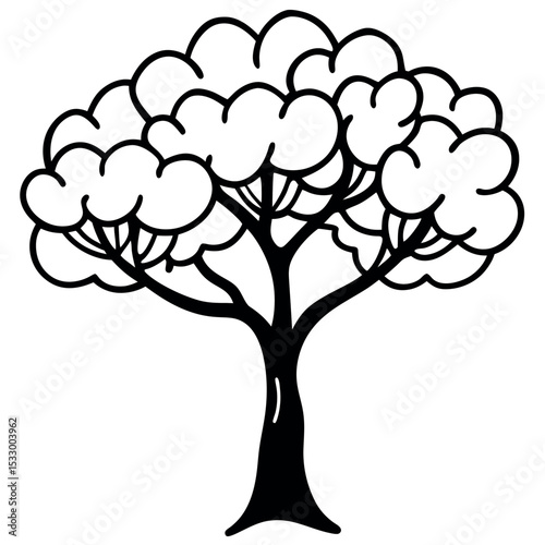 Illustration of a colored and outlined plum with leaves on a white background in a simple graphic style.