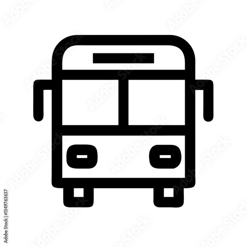 Black outline transport illustration, bus front image on white background. Vector design object