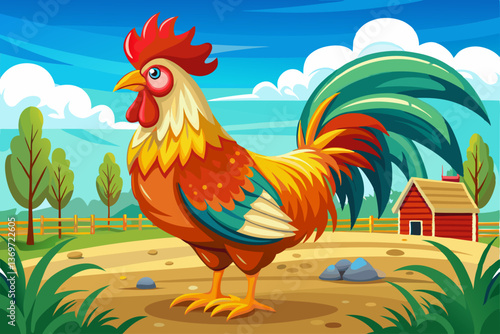 cute animals farm cartoon in organic rural farm.