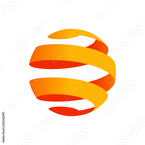 Logotipo esfera tridimensional abstracta con espiral en color naranja