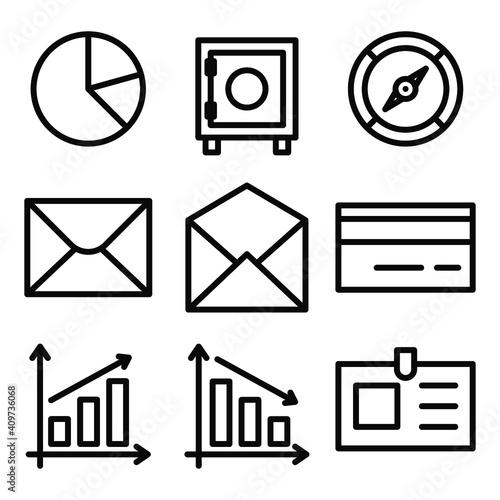 Set of cash, business, future and online, website related icons on white background, thin line, outline EPS Vector