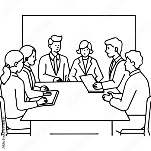 Business concept flat style outline vector illustration on the subject of planning, discussing, brainstorming. Editable stroke