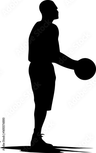 Silhouette of a basketball player dribbling a ball while in motion, depicting dynamic movement and athletic agility in sports design