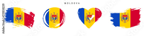 Moldova hand drawn grunge style flag icon set. Free brush stroke flat vector illustration isolated on white