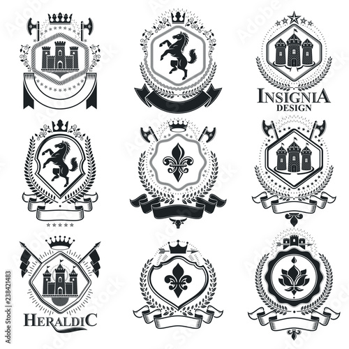 Heraldic coat of arms decorative emblems black set