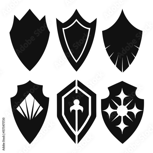 Set of vector various style shields. Shield icon vector, black silhouettes