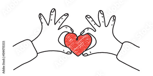 Brush drawn hands holding heart. Romantic print for valentines day.  Elegant minimal line stroke style. Vector chalk graphic elements
