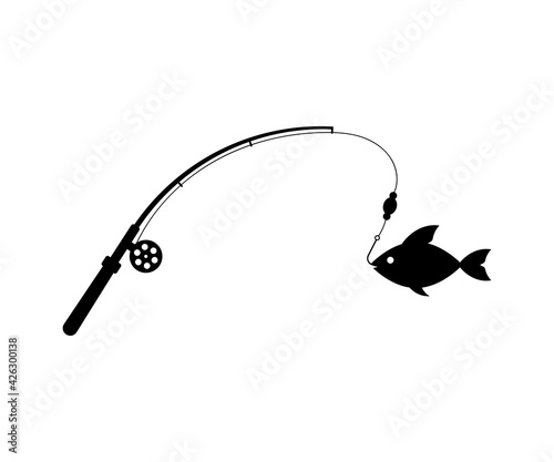 Fishing rod and catch of fish. Silhouette for sport fishing and active hobby
