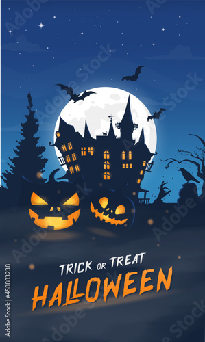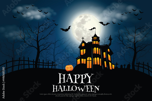 Creepy Halloween night poster full moon copy space