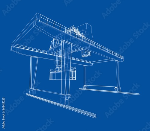 Lifting crane doing heavy lifting. Tower and harbor life vector illustration. Generative AI