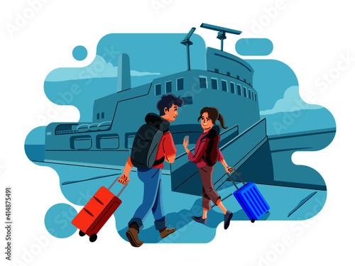 Happy Couple Ready For Vacation With Passports And Luggage Cruise Background