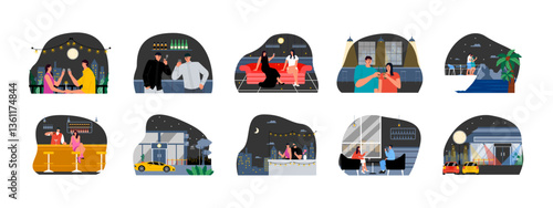 Charming Cliff Top Rural Houses by Ocean Scenic Countryside Vector