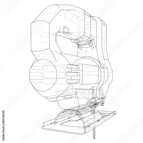 Line Electric jigsaw with steel sharp blade icon isolated on grey background. Power tool for woodwork. Colorful outline concept. Vector
