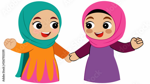 Happy Young Muslim Kids with Ramadan Mubarak Banner Celebrating Ramadan