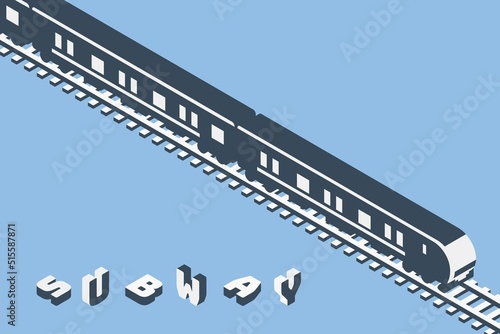 レールの上を走るアイソメトリックな地下鉄のシルエットのイラスト.