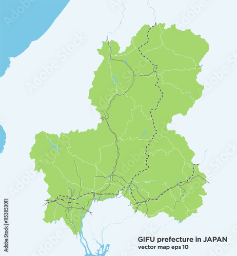 日本の岐阜県のシンプルな緑色のロードマップ