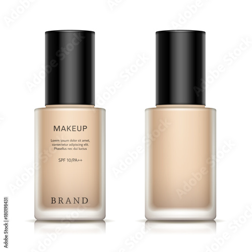 Cosmetic ads template, Realistic Cosmetic bottle. Container for skin care product, serum and other cosmetics bottle mockup on dazzling background. Golden foil and bokeh elements. 3D illustration.
