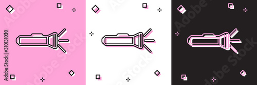 Set Flashlight icon isolated on pink and white, black background. Vector Illustration