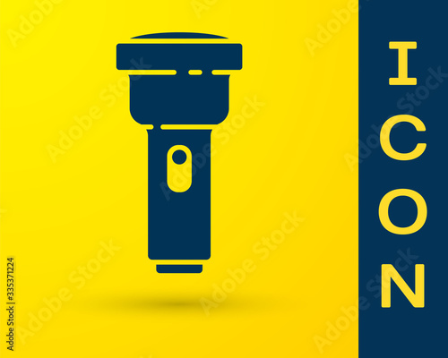 Blue Flashlight icon isolated on yellow background. Vector Illustration