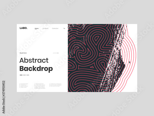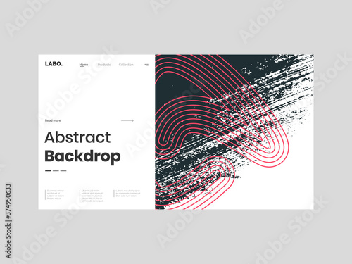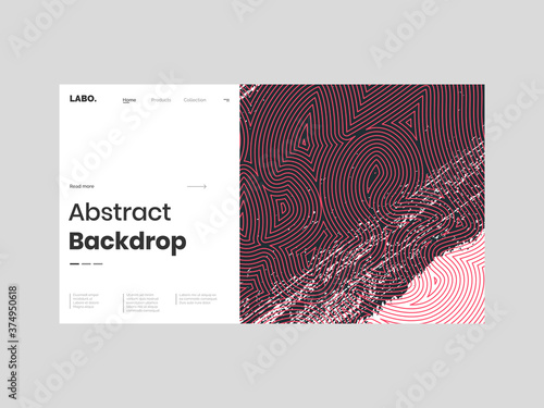 Set homepage design with abstract illustration. Colorful lines, spots, strokes. Decorative backdrop. Hand drawn texture, wavy shapes and gradient. Eps10 vector.