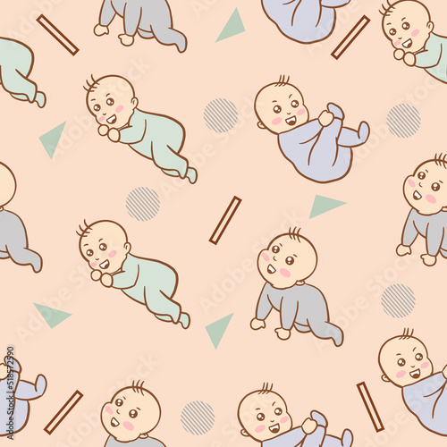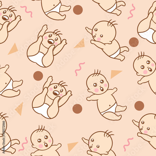 Set Cute Baby Babies Boy Cartoon Flat With Abstract Brown Object Collection Illustration Lite Pink.