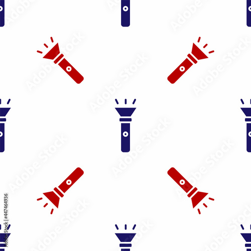 Blue and red Flashlight icon isolated seamless pattern on white background. Vector