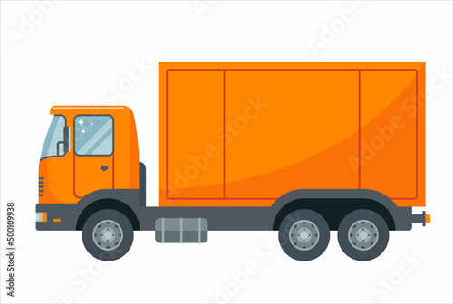 Lorry car front view. Truck for transportation various objects. Vector linear illustration.