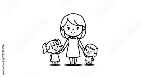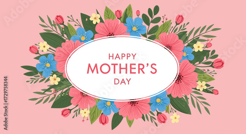 A charming vector illustration portraying diverse families celebrating Mother's Day with heartfelt gifts and embraces, conveying love and appreciation for maternal figures