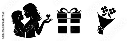 Icons representing maternal love and bonding through simple, elegant black designs