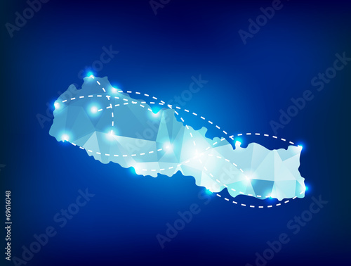 Nepal network map. Abstract geometric map of the country. Internet connections and telecommunication design. Elegant vector illustration.