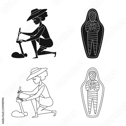 Vector illustration of archaeologist  and girl icon. Set of archaeologist  and pit stock vector illustration.