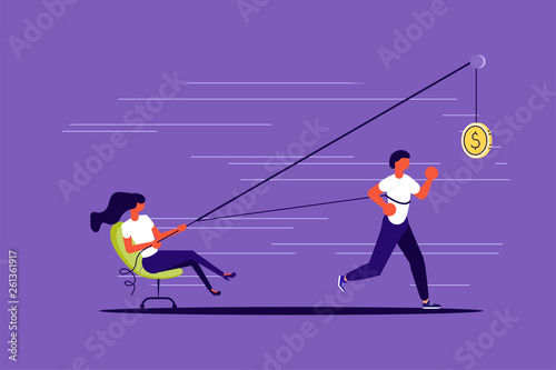 Employe resist. The man confronts and resists mental problems, stress. Survive recession. Feminism, inequality. Gender gap. Flat vector illustration