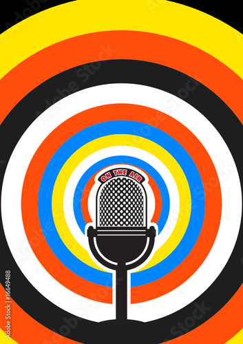 Retro microphone on colorful background. Podcasting and creativity in music concept