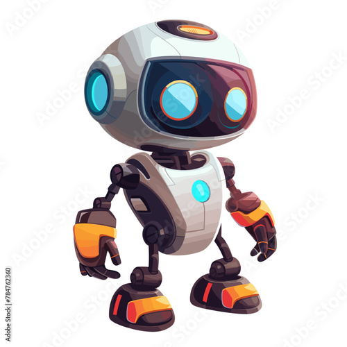 Cartoon robot with ai display analyzing data and modern technology concepts.