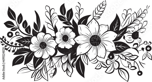 Monochrome Floral Serenade Noir Vector Logo Whispers Noir Blossom Melodies Intricate Hand Drawn Florals