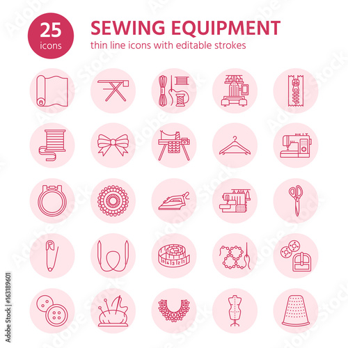 Vector icon and logo sewing and handmade. Editable outline stroke size. Line flat contour, thin and linear design. Simple icons. Concept illustration. Sign, symbol, element.