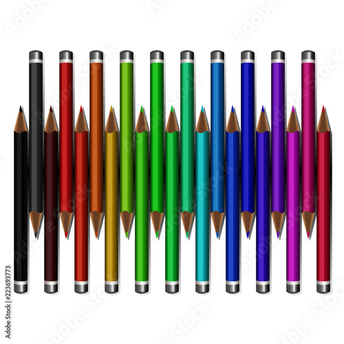 Buntstifte, realistische Darstellung in Regenbogenfarben