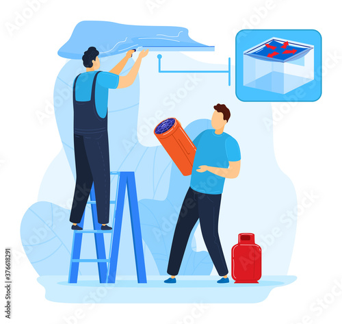 Man doing Foam roller flutes. butt stretch exercise. Flat vector illustration isolated on white background