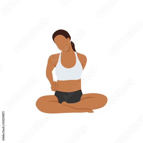 Woman doing Twisted deer yoga pose. Flat vector illustration isolated on white background
