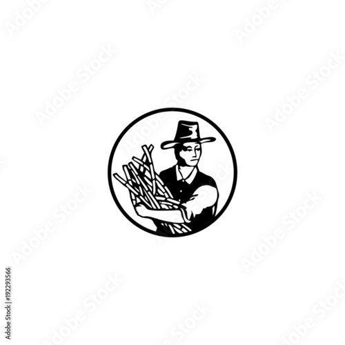 Farmer Harvesting Sugarcane Line Art Vector Illustration Agriculture Hat Traditional Farming