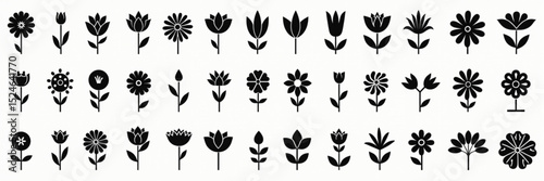 Black and white vector silhouettes of plants and flowers with nature-themed design elements