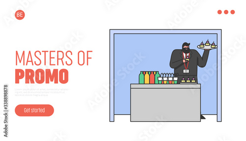 Isometric flat 3D concept vector exhibition or promotion stand.