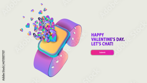 A lot of little hearts fly out of colored smart watches