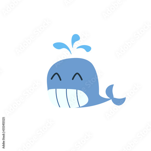 Big blue whale smiling. Ocean mammal animal big fin. Aquatic icon isolated on white background. Sea animal in cartoon style. Funny underwater wild life. Exotic aquarium collection. Vector illustration